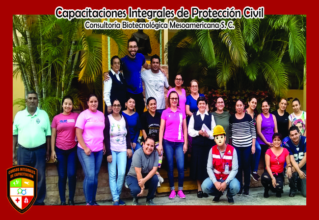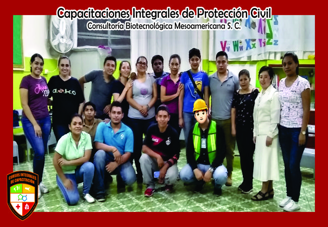 Para su seguridad, la Consultoría Biotecnológica Mesoamericana S.C. se encuentra con la debida capacitación por parte de la Escuela de Protección Civil del estado de Chiapas, cubriendo las 4 brigadas básicas que son requeridas por esta institución. A continuación les presentamos fotografías de algunos de los cursos que hemos llevado a cabo: